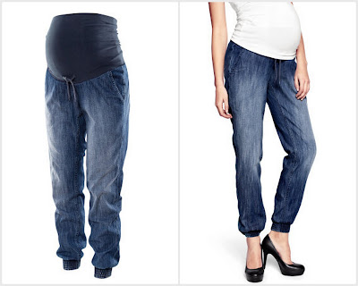 Existem depois as calças de ganga não evolutivas que só se usam na gravidez, como são exemplo este par que também acho muito confortável: